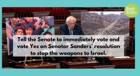 1. Tell the Senate to immediately vote and vote Yes on Senator Sanders' resolution to stop the weapons to Israel.