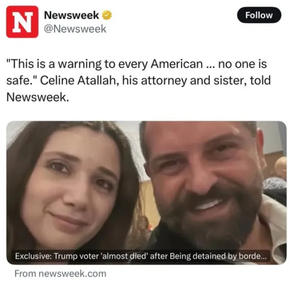 Bachir Atallah was not kidnapped or arrested, simply terrorized at the border. An American citizen says he and his wife were detained for hours by US border agents when they returned to the United States after a short trip to Canada.