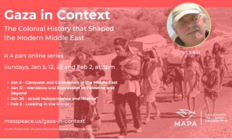 Feb 2: LOOKING IN THE MIRROR: How the U.S. has shaped the contemporary Middle East from before the Cold War to the present. Indigenous nationalism and its opponents. Addressing the domestic colonial and imperial background to US support for Israel and its destabilizing interference in the region. Massachusetts Peace Action.