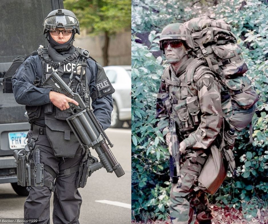 Columbus police from downtown Columbus protest by Paul Becker. U.S. Army Natick Soldier by https://ark.digitalcommonwealth.org/