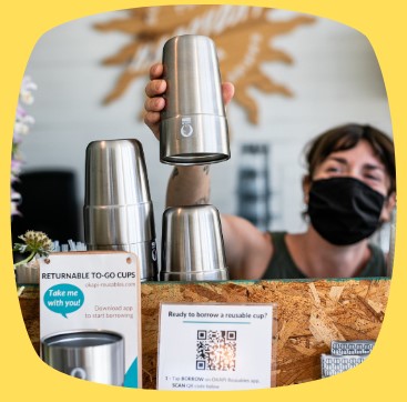 Download the Okapi app (just $10 to join).Borrow up to two cups at a participating café by tapping BORROW on the app and scanning the QR borrow code at the counter as you order.Enjoy, then return! Return your cup to the café within two weeks, using the app to scan the QR return code at the dirty cup bin. The lost cup fee is $15.The program reflects a growing movement towards circularity in the food and beverage industry. CORC estimates that in Columbus about 500,000 disposable cups enter the waste stream every day. The reusable cup pilot is designed to test the demand and logistics of a more sustainable coffee service, while demonstrating how the community can reduce waste and validate the win-win nature of a circular economy approach.