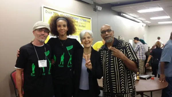 The two most fiery calls to action during Stein’s nomination process were from the always eloquent Cornel West and YahNe Ndgo. Ndgo, as if conjuring up the spirit of “criticism/self-criticism” from the 1970s, appealed far more to the primarily white 200 or so Green Party delegates than the numerous Bernie-or-Bust observers, who broke into frequent chants of “Jill! Not Hill!”