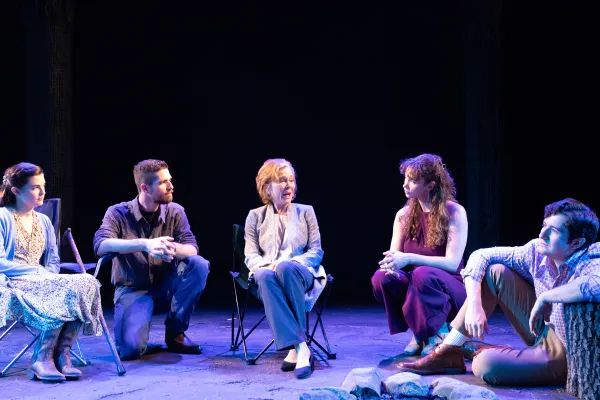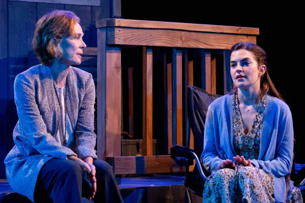 At one point in the play, Justin confides to Emily that he wants to tell her something, but the soused Kevin stumbles back to the cabin from the woods, where he had been relieving himself. Later, when Emily and Justin are alone again, he reveals what he’s been trying to tell Emily. Does he pop the question? Let’s just say his announcement expresses the play’s theme of the inability of these people, as psychically crippled as Emily is physically handicapped, to form full human connections.