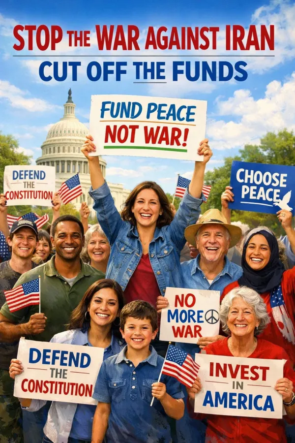 Exercising the power of the purse, voting “No” on appropriations which enable war, is the only means by which Congress can stop this war and any other war. If Congress funds war, Congress authorizes war.