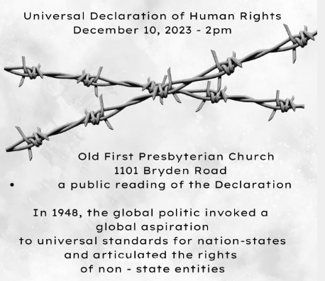Community Organizing Center is organizing and readers are coming from a variety of voices: Interfaith Association, Ohio Immigrant Alliance, First Congregation, Scioto Valley Presbytery, and others. We have held an annual marking of the declaration for 30 years, but this year is the 75th year. We are recording the reading and will post it.