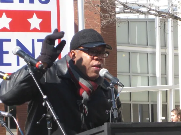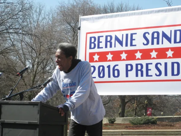 Harris was speaking to a crowd of about 900 Sanders supporters at the Wexner Center Plaza on the Ohio State University campus on February 27, a few days after a Sanders campaign office opened on East Main Street in Columbus.