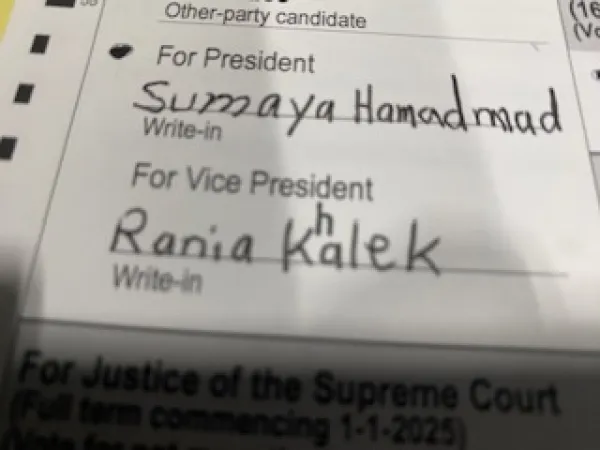All that she got was an answering machine. Finally, Susan called a private number and got an okay. Only if I take a picture of the ballot section where it showed my write-in candidates. I was fine with that. That means I have physical proof of who my three write-in candidates were. Basically, I was very honest with them from the beginning as I told them I am a freelance writer, and I am writing an article about the election, how I voted, and why. At first, this is the most interesting election I've voted in since I came to America 47 years ago this week. Personally, I believe the highest form of patriotism is exercising my right to free speech, even if it is not popular. For that reason, free speech is what I enjoy the most about living in America. Who are the three write-in candidates I chose: * Ghadi is a brilliant war correspondent stationed in Lebanon. I replaced her because she was not a US citizen. * Rania Khalek is an award-winning investigative journalist. She received the Seymour Hersh Award. I saw her speak on TV programs and debate pro-genocide guests about Gaza and Lebanon more than any other Arab American. Rania is of Lebanese descent. Dr. Sumaya Hamadmad is one of the most distinguished members of the Central Ohio Muslim community. She is a Syrian-born woman, and I don't believe I attended any pro-Palestinian rally or protest in Columbus when she and her family were not present. Mrs. Hamadmad is an OSU research scientist in the Department of Ophthalmology and Vision Science at the College of Medicine. She is still fighting the city of Columbus to drop charges against her and 38 other pro-Palestinian activists at OSU last April for condemning the Israeli genocide and forced starvation in Gaza. Attorney Mazen Rasul is a local Palestinian advocate, organizer, and successful lawyer. I have known him for a long time, and he is a one-man army. Mazen was shamefully kicked out twice from campaign events sponsoring Senator Sherrod Brown for simply asking him, "Why did you not call for a ceasefire in Gaza?" Mazen is from Al-Bireh near Ramallah in occupied Palestine. I must confess this is the most interesting election I've voted in since I came to America 47 years ago this week. Personally, I believe the highest form of patriotism is exercising my right to free speech, even if it is not popular. For that reason, free speech is what I enjoy the most about living in America. Mahmoud El-Yousseph is a Palestinian freelancer for Islamicity.com and ColumbusFreePress.com. He can be reached at