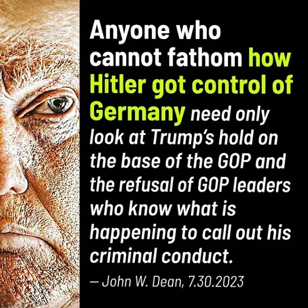 Donald Trump has already made as clear as Hitler did that he intends to make himself dictator. That he means to establish detention camps where you might end your days. That he wants “retribution” against those who dare question his Divine right to rule. That opponents of the Christian Nationalist state deserve Hell on Earth… and then to burn at the hands of a hateful fascist God.