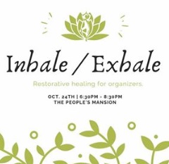 Inhale/Exhale is a restorative healing program for local organizers and activists in the progressive movement. We will have experts in various forms of restorative healing practices and therapy at each session guiding us through practice and equipping us with tools to take home. This month, Erin Upchurch, social worker and wellness practitioner, will lead us in finding rest and healing through the practice of Urban Zen Integrative Therapy.  RSVP on Facebook for your free path to healing! Questions? Hit up Charlie H. A Stewart. Hosted by Ohio Voice and The People’s Mansion.  Location:  The People’s Mansion, 394 E. Town St., Columbus 43215. Facebook