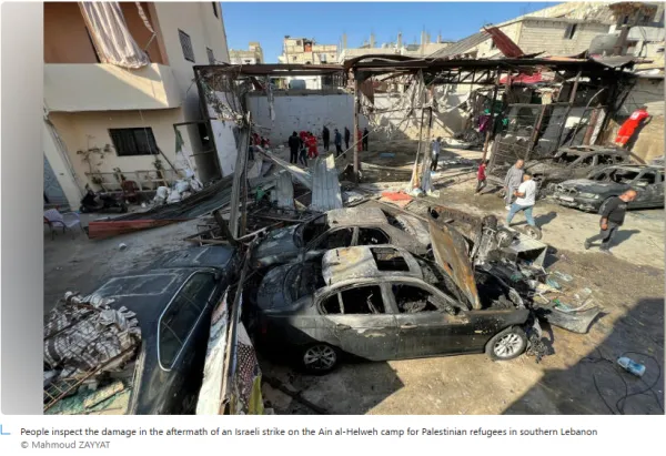 Palestinians described the attack as a "massacre," with footage shared online showing civilians and rescue teams carrying bodies and remains of those killed in the blast. In one clip, the scattered remains of victims lay on a stretcher in a crowded street. My wife and I were born in Ain Al-Hilweh. After the strike, my wife talked to one of the female schoolteachers in the camp, who told her "I lost four of my former and current students in the massacre, and I am so crushed and week to attend their memorial services. I would have to pay my respect to their loved ones later."