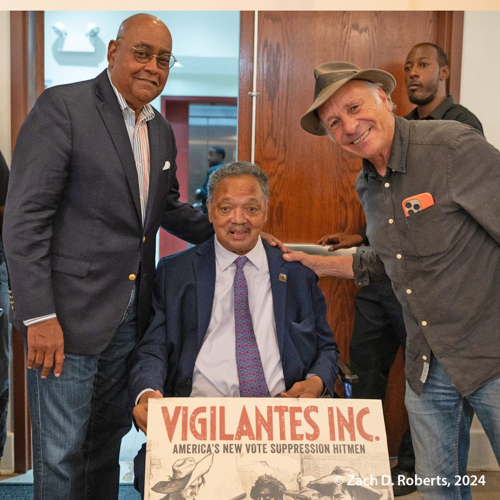 Above: Palast with Jackson at the Rainbow PUSH premiere of Vigilantes Inc. in Chicago in August 2024. Photos: Z.D. Roberts.