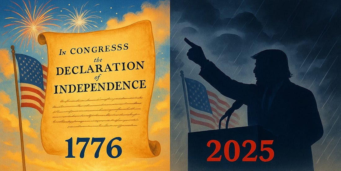 We reaffirm the Letter of the Declaration of Independence from 1776, as contrasted with the 2025 assault on the government of American people.