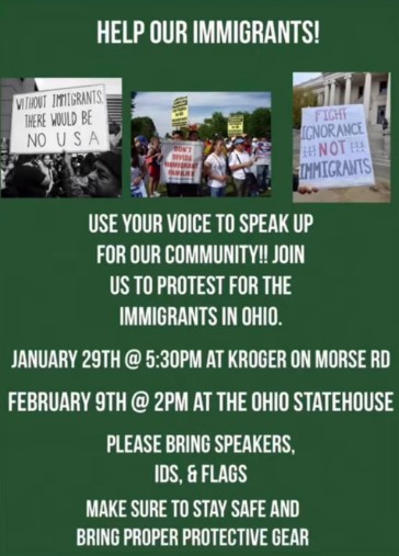Asking attendees to wear white or pink to be identified as with the group.  Use your voice to speak up for the community and immigrants!