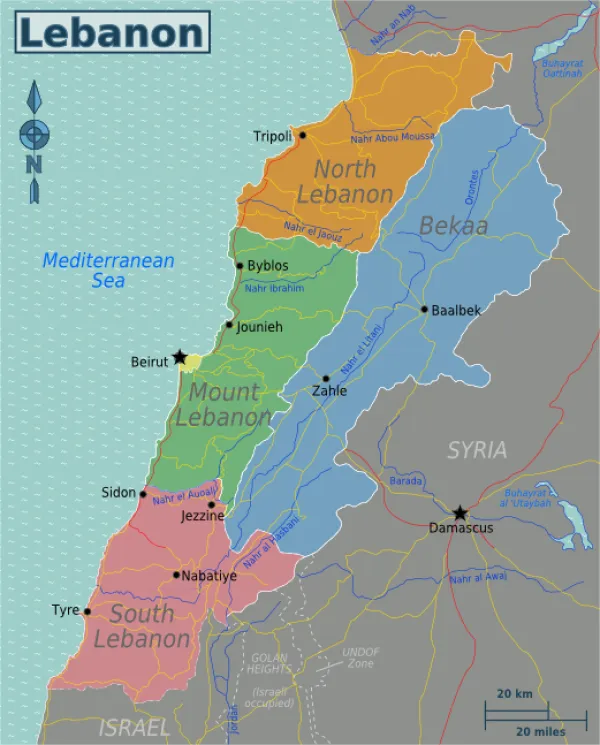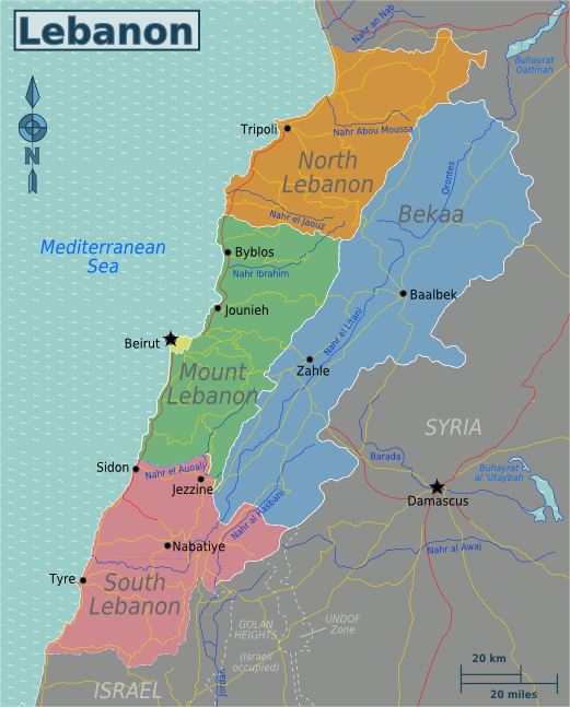 Map of Lebanon: Globe-trotter, CC BY-SA 4.0 <https://creativecommons.org/licenses/by-sa/4.0>, via Wikimedia Commons