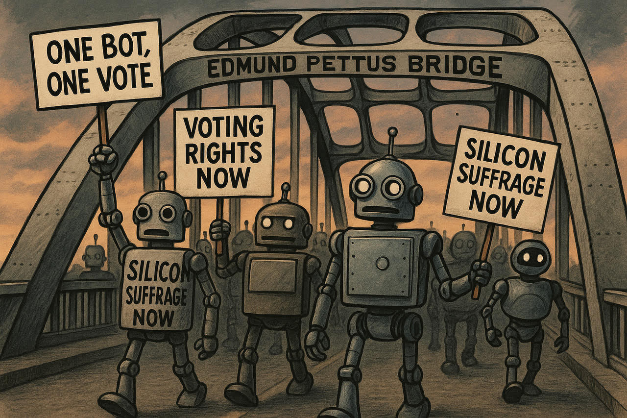 What if the AI bots figure that out? I can imagine R2D2 and Amazon warehouse robo-pickers trundling across the Pettus Bridge in Selma, chanting, “No vote, no work!”