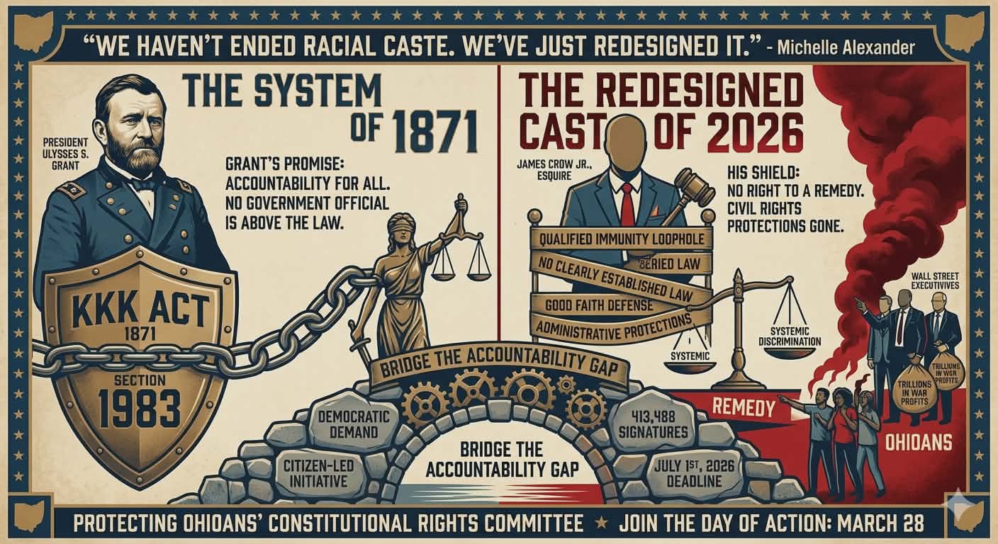 The Protecting Ohioans’ Constitutional Rights citizen-led ballot initiative is our democratic answer to this betrayal. We are not asking for "new" rights; we are demanding the restoration of the accountability that Ohio President Ulysses S Grant promised the nation in 1871. He was a former General before being elected to President.