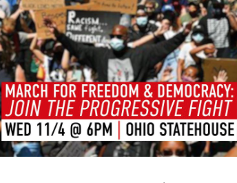 Join your neighbors from across Central Ohio and various local progressive organizations to demand free and fair elections, a complete count of all our votes, and a peaceful transition of power—should a party contest the results of the election. And we will continue the fight for: