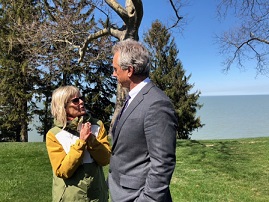The Lake Erie entourage arrived after stops in Toledo, Marble Head, and Sandusky. Lake Erie’s toxic blue green algae problem is bad and getting worse. Most businesses and residents along the lake are worried and hoping for answers. Mr. Kucinich introduced his friend “Bobby”, and then Mr. Kennedy spoke about the impact of Industrial factory farms, in particular Hog CAFO’s (Concentrated Animal Feeding Operations) moving into NW Ohio and how large quantities of fecal run-off into the Maumee River basin can impact Water Systems, Lake Erie in particular.