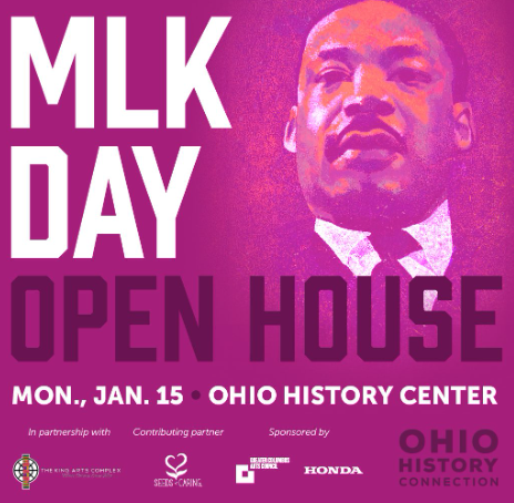 The Ohio History Connection presents the annual MLK Open House. Celebrate the life and legacy of civil rights leader Dr. Martin Luther King through visual and performing art performances. This is a unique opportunity to learn about the impact of Dr. King’s teachings and learn how his work changed the trajectory of the country.
