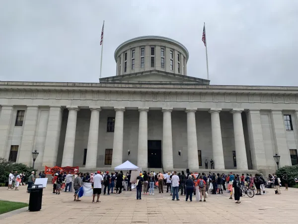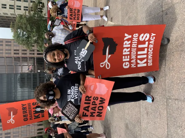 Nearly 100 Ohioans across race, place, and income rallied at the Statehouse Saturday to keep up the fight for fair maps