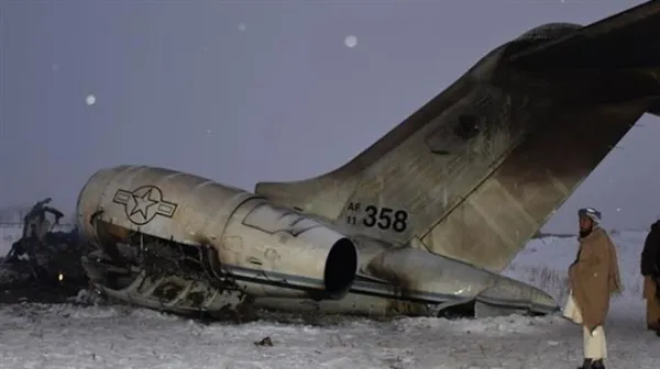 *(Top image: Pictures shared by Taliban linked social media accounts showed wreckage of an E11 aircraft on a snowy plain. Credit: Pajhwok)