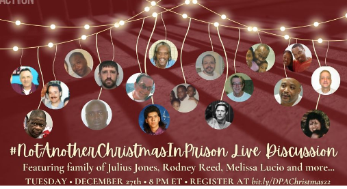 Join us at 8pm on Tuesday, December 27 for case updates and tips for dealing with the holidays from people who are living in that situation, including John and Michelle Lucio, Julis Jones’ family, Rodrick Reed, Charles Keith, Delia Perez-Meyer, Keith Lamar (live from Ohio’s death row), and others.