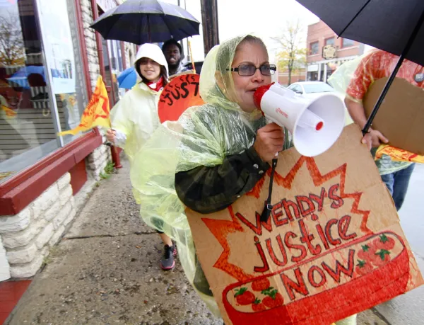 This past Saturday, over 50 Ohioans braved the cold and rain on game day to rally outside the Wendy’s just south of the Ohio State campus. Ohio Fair Food, a group consisting of students, farmworkers, people of faith and organized labor, showed up demanding one thing: that Ohio-based Wendy’s join the Fair Food Program, a program which ensures a humane work environment and increased pay for Florida tomato pickers.