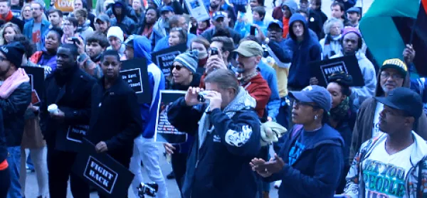 The Ohio Student Association held a rally on the Statehouse steps on October 18 to demand an end to police killing of unarmed people of color both in Ohio and around the country. The group has been recently active protesting the police murder of John Crawford III in a Walmart in Beavercreek Ohio. Despite video showing Crawford being gunned down by Officer Sean Williams with virtually no warning, while holding a BB gun he intended to purchase, Williams was not indicted for any crime connected with his death.