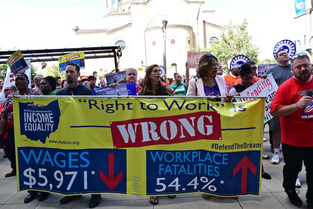 At 3,200 strong, it was the largest such rally since the Ohio Senate Bill 5 protests of 2011. The Ohio Education Association, UAW, SEIU, AFSCME, and other unions and pro-labor groups from across Ohio were represented.