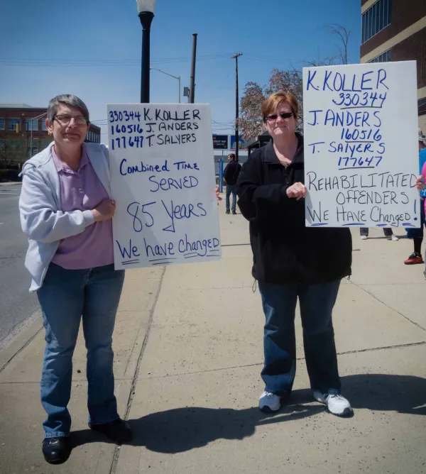 There was a demonstration at ODRC Friday, April 24, 2015 demanding justice for old-law prisoners. There were approximately 30 people there, a very good attendance for a prison issues demonstration. The demonstration was "In memory of Gerald Loomer" sponsored by "First Thing's Smoken" and "In the Name of Justice." Gerald Loomer, died in an Ohio prison in February. On February 9, Darlene Loomer Moore Bendenritter posted on Facebook (page Release Gerald Loomer): "There was a demonstration at ODRC today demanding justice for old-law prisoners. I counted 30 -- very good attendance for a prison issues demonstration.
