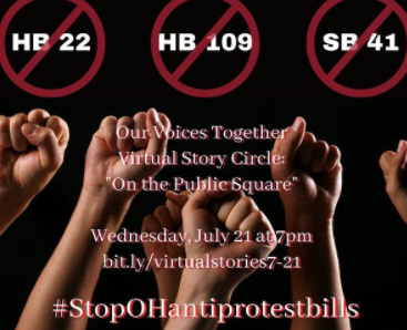 Join us in the virtual “public square” on July 21 to speak out against these awful anti-protest bills. We’ll broadcast this event via “Facebook Live” so that others will be able to listen and learn.