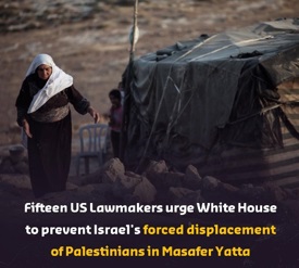Jewish Voice for Peace urges us to continue pressuring members of Congress to stand against Israel’s Forced Displacement of Palestinians in Masafer Yatta. Call your members of congress and ask them to call on the State Department to use every possible tool to stop the Israeli government from forcibly transferring over 1,000 Palestinians from their homes in Masafer Yatta in the occupied West Bank. These families could be displaced on a moment's notice and I demand that my representatives in Congress urgently take action to protect Palestinian rights.