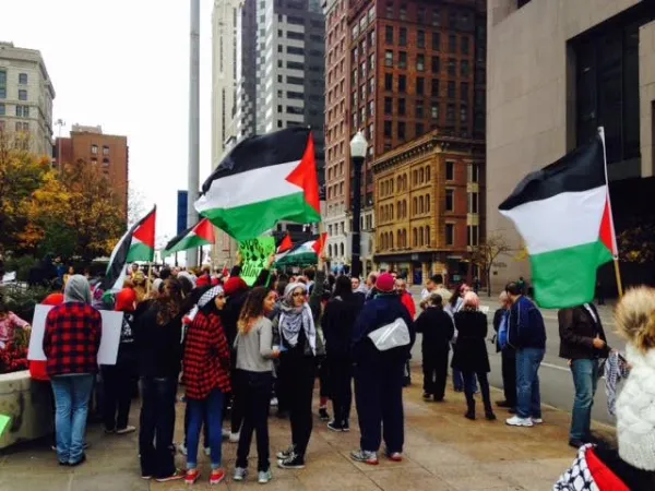 Demonstrators showed their solidarity with the people of Palestine at the Ohio Statehouse on Saturday, October 24.
