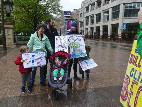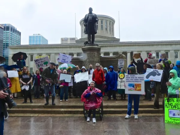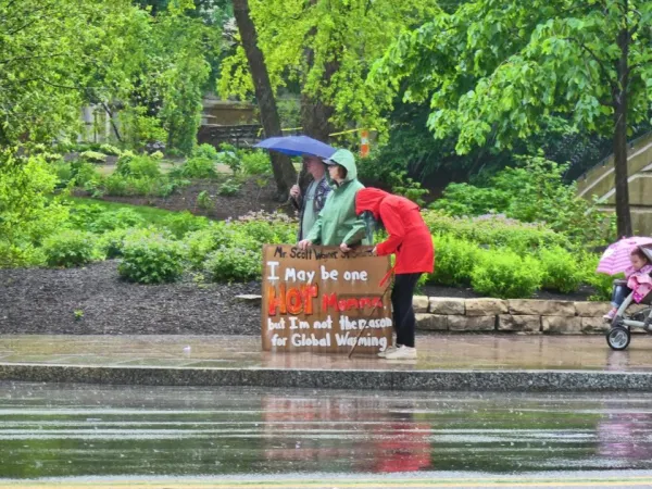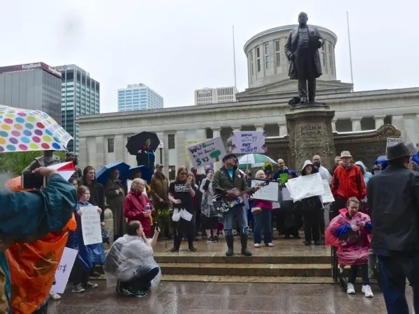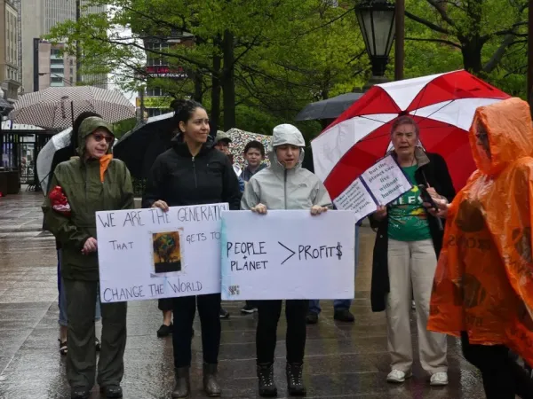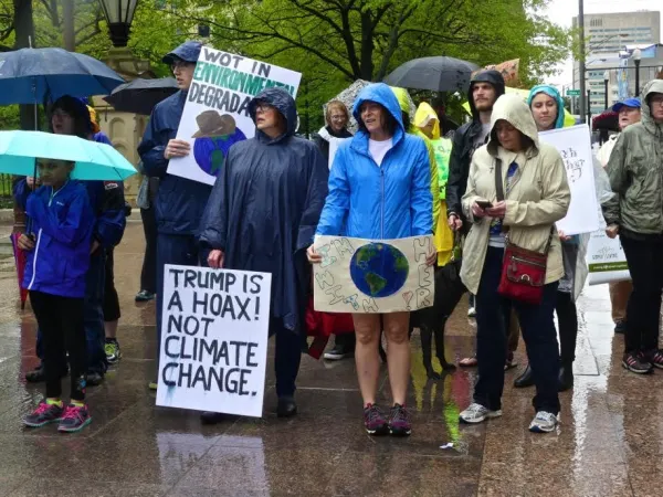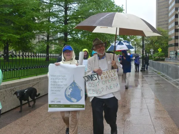 Despite the rain and gloom, several hundred people gathered for the People's Climate March on Saturday, April 29 in downtown Columbus.