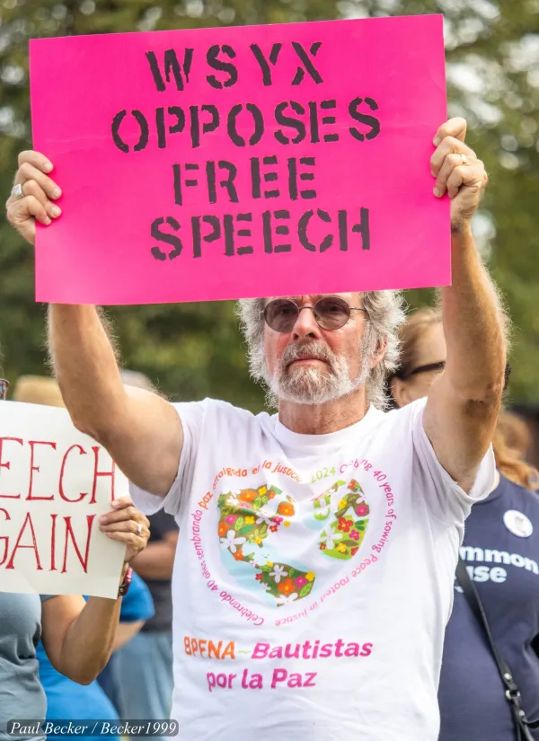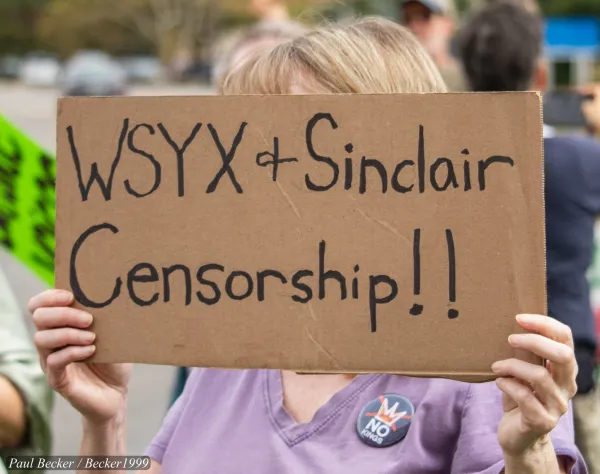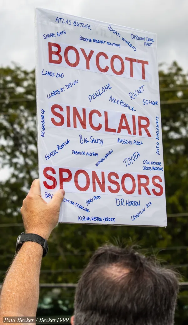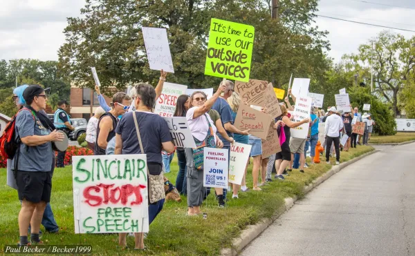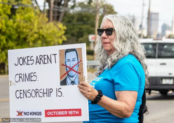 The activist group Indivisible of Central Ohio organized a protest on September 23 to protest ABC's cancellation of Jimmy Kimmel and Sinclair Broadcasting's refusal to air it. Some ABC stations, those owned by Sinclair, will still not be broadcasting his show, in an effort to suppress Kimmel from criticizing Trump.