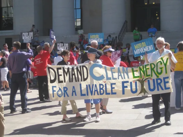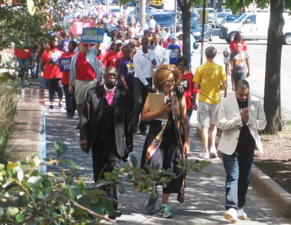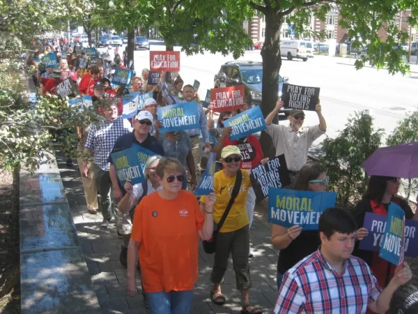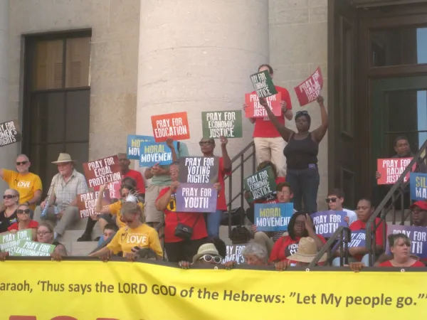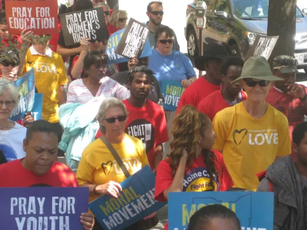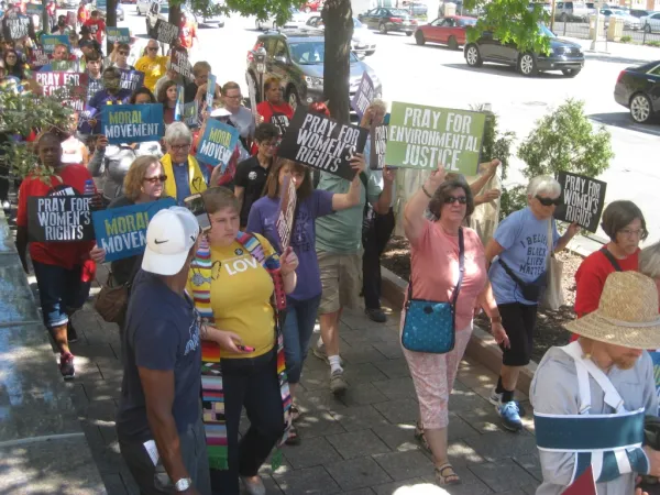 It was a revival, on a much larger scale, of the Moral Monday rallies held at the Statehouse before the November election two years ago. Started by Rev. William Barber in North Carolina, the Moral Monday movement reclaims the moral narrative from the religious right, which in recent years has defined morality almost exclusively in terms of restricting reproductive rights and condemning LGBTQ people.