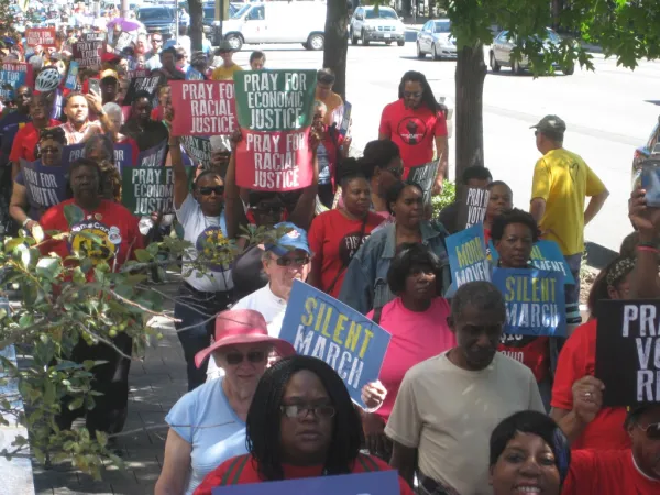 Lao Tzu said that silence is a source of great strength. This principle was evident on September 12, when about 400 people of faith marched in silence from the First Congregational Church in downtown Columbus to the Ohio Statehouse.