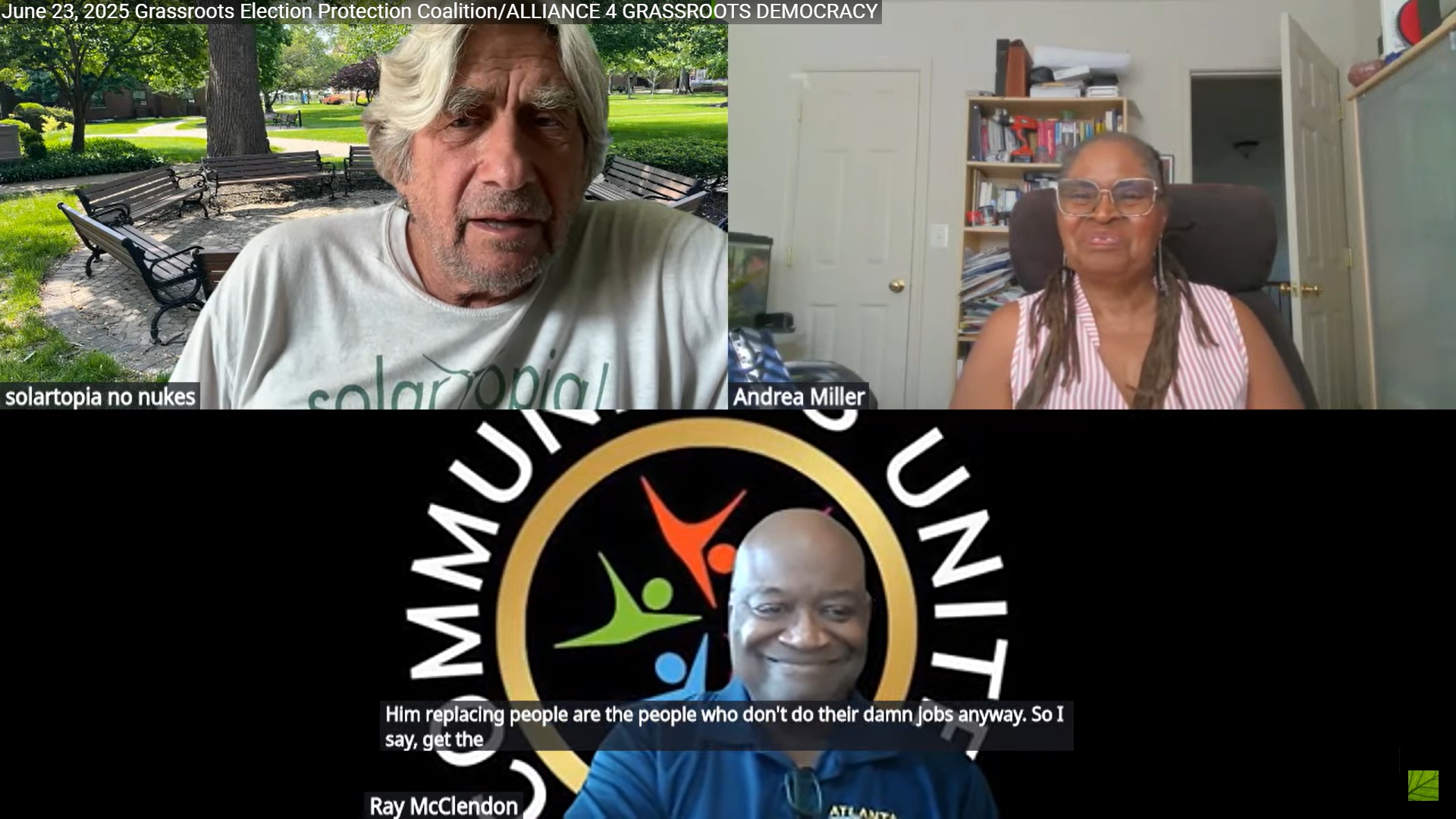 We start GREEP zoom #228 with the great ANDREA MILLER who gives us the up-to-date rundown of grassroots election protection in the former Confederacy of Virginia, with further info on the Integrated Election Protection Platform.