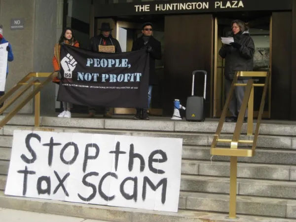 The tax bill “is part of Trump’s continued assault on the working class, funneling money from critical social services and the working class into the pockets of the ultra wealthy in a titanic transfer of wealth,” Davis said. “This monstrosity of a bill has passed both houses of Congress with nothing more than the typical limp resistance offered by Democrats. If they want to call themselves the resistance to Trump’s reactionary agenda, then they must actually resist! We call on Bernie Sanders, progressive Democrats like Senators Warren and Brown, and unions to join the coalition represented here. We call for mass protests against the tax bill during the reconciliation process.”