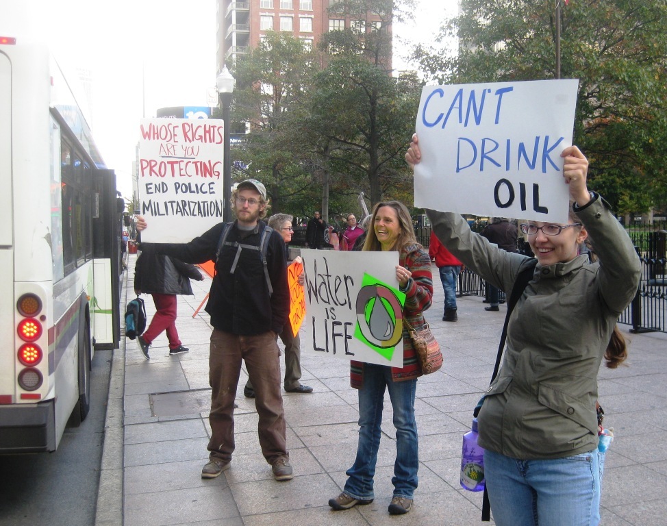 “I don’t want our government to provide protection for corporate profits in another state,” said Kim McCarthy of Dayton. “The pipeline must be stopped. They’re turning their back on treaties they made with the Native Americans. It’s enough. The time has come for the people to demand that our government represent us instead of corporations.”