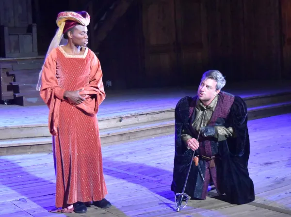 stalwarts who tread the Bard’s boards are the swashbuckling Max Lawrence as the Duke