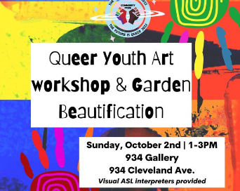 We are having a Queer Youth Art workshop and Garden Beautification event that we know you will love. Come join us as we give back to our precious community, honor our ancestors and create a safe space for our futures.