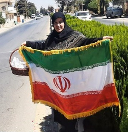 Woman holding Iranian flag