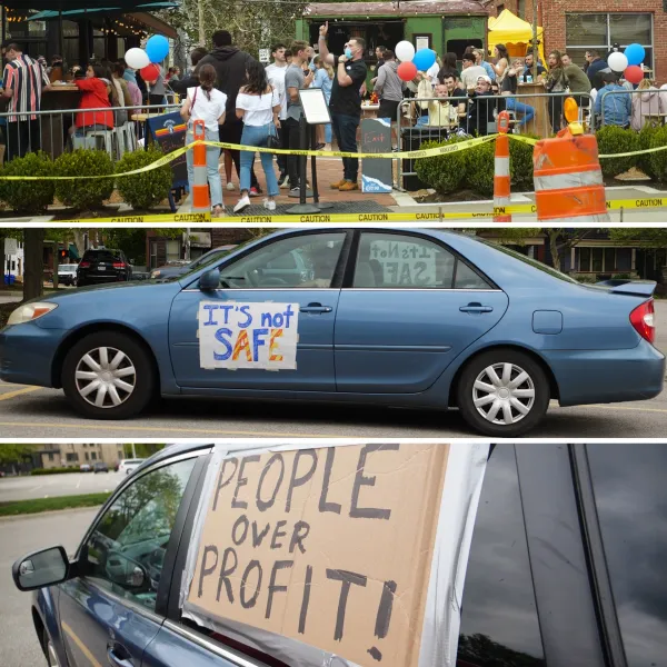 On May 15 hospitality workers organized a car and bicycle rally in the Short North to protest the opening of restaurant and bar patios. To discourage customers from patronizing the businesses, they drove and biked very slowly through the Short North to disrupt traffic flow.