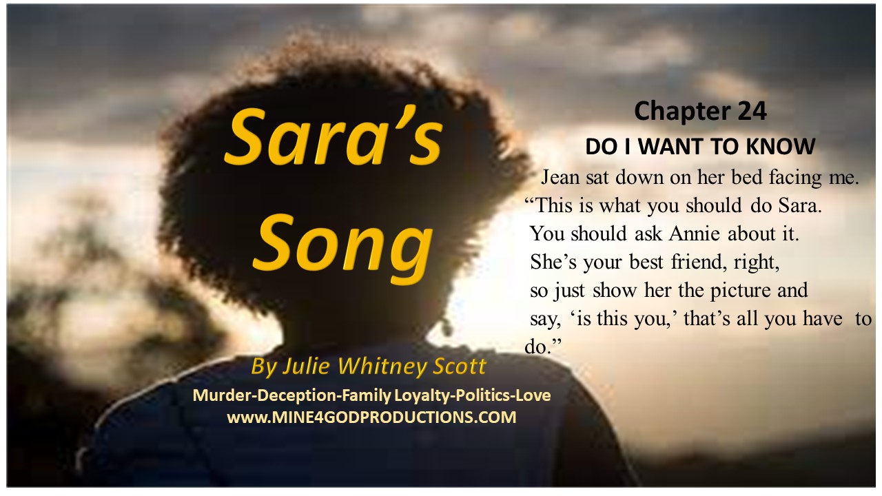 I opened the bedroom door and motioned for Jean to get up from the bed and follow me. Just as we got to the front door and I opened it, Shelia opened her bedroom door and called down to us to start setting up the table for dinner. Darn it! Now I would have to wait until the next morning to ask Annie about the picture. I shut the door and looked at Jean who shrugged her shoulders at me with a slight smile to her lips.