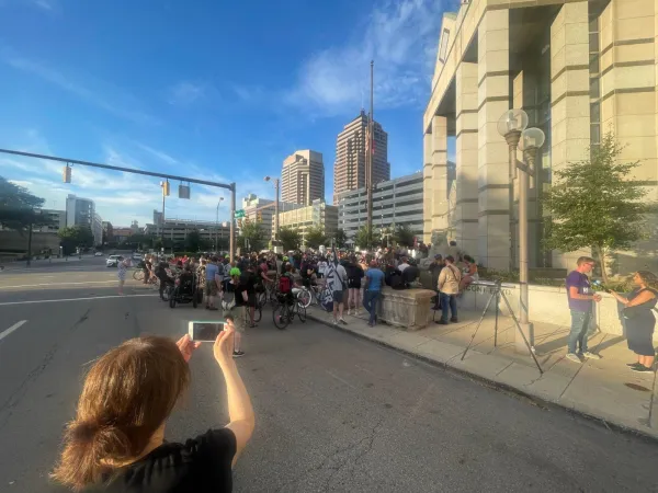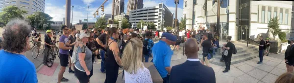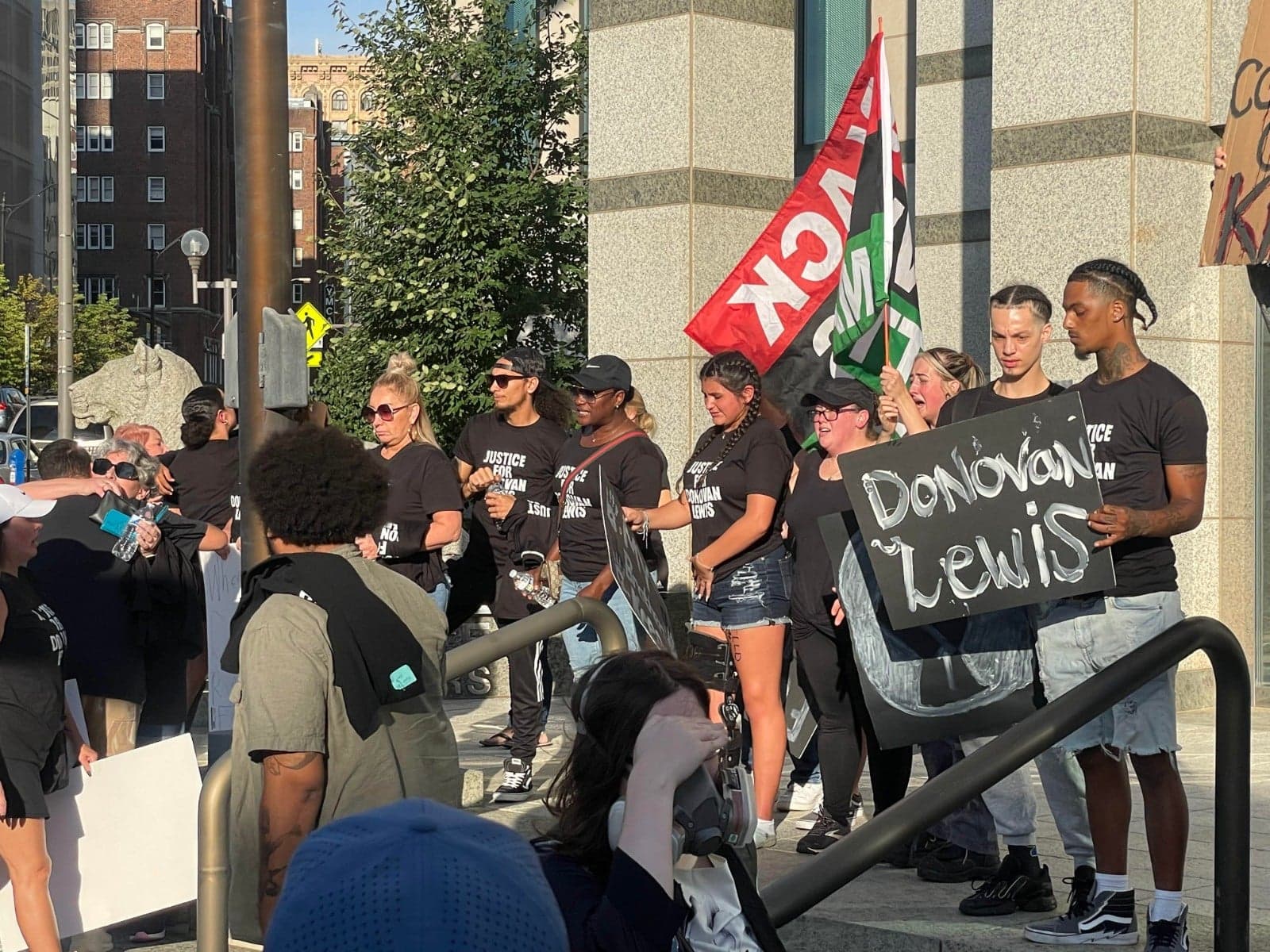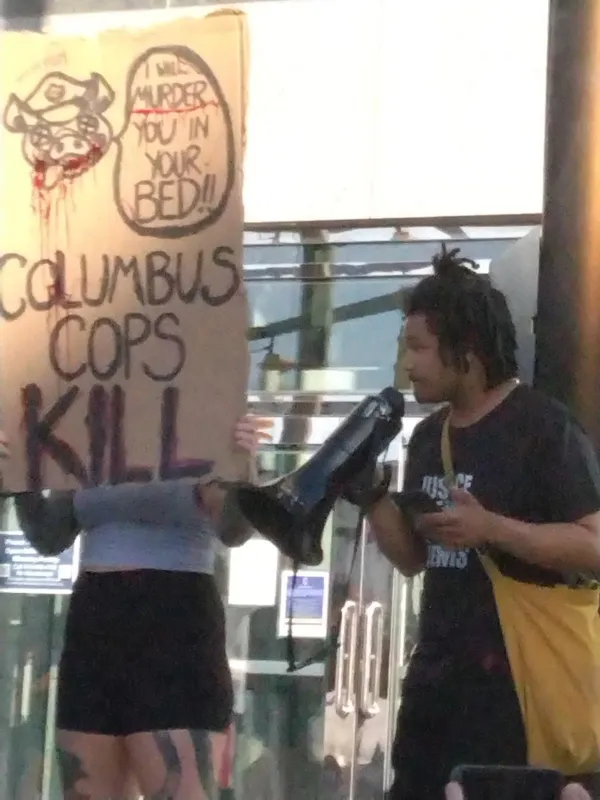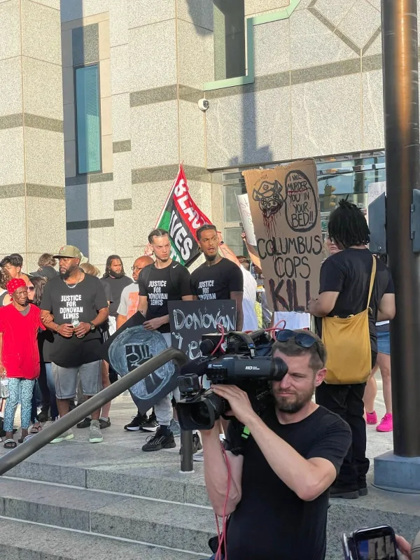 The family, friends and allies of Donovan Lewis converged on Columbus Police headquarters Friday, September 2 to protest his murder. Chants of "No justice, no peace!" and calls for firing  Columbus police officer Ricky Anderson, who killed hte unarmed 20-year-old Lewis in his bed when delivering a warrant in the middle of the night, were interpersed with shouts of "Say his name!" "Donovan Lewis."