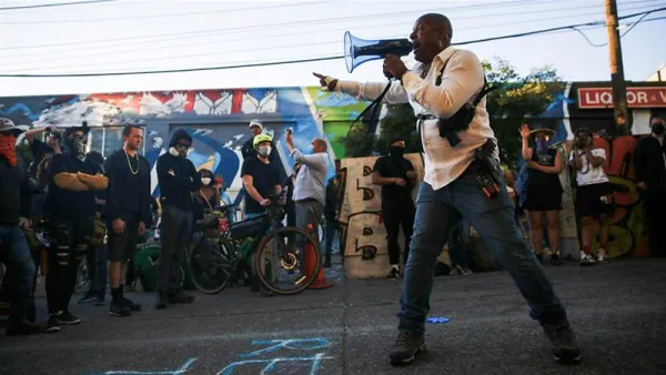 Arrington told Evans: “The vibe in CHOP is peaceful and energetic. People really speaking out about the Black Lives Matter movement and it makes me feel like I’m in a creative bubble where people are looking to use their voice in a positive light to spread a very powerful message. They’re not willing to give up at all. We’re going to keep doing it until change actually comes about.”