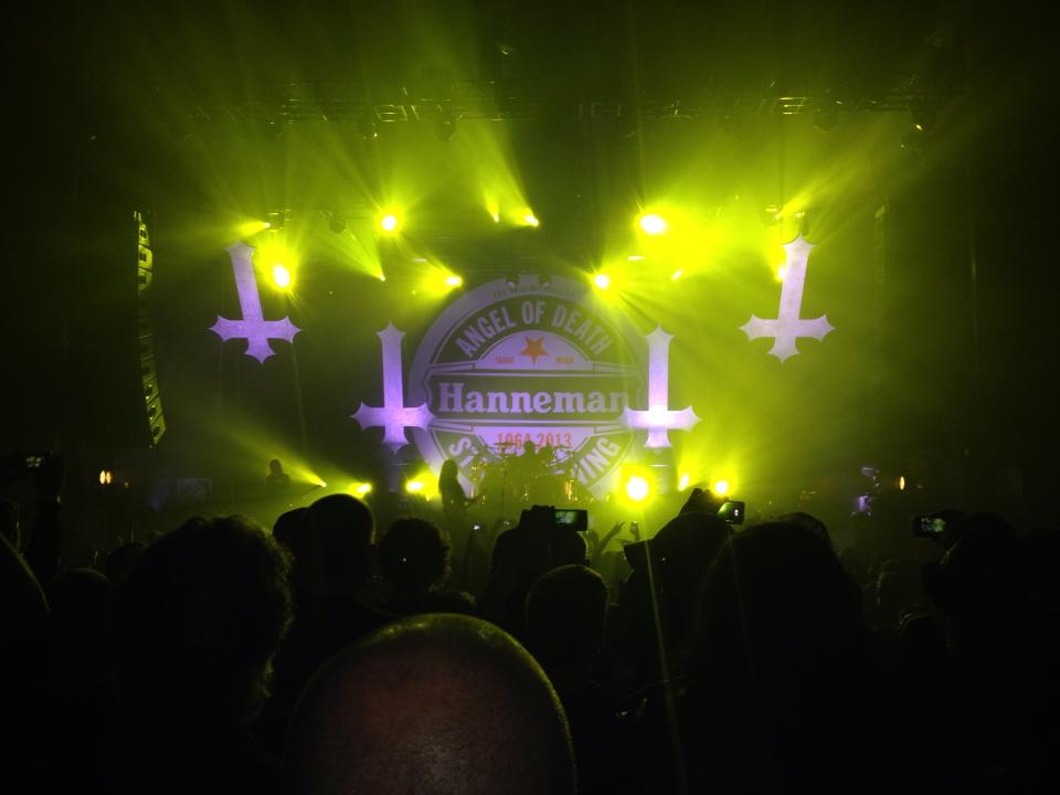 Behind Slayer was a Heineken beer logo changed to say Hanneman with “Angel of Death” above it. When this backdrop changed, Slayer launched into “South of Heaven.”