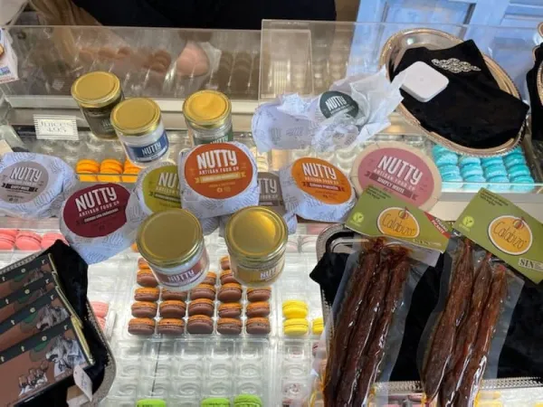 Paris 75 Cafe in Olde Dublin is a quaint and simply adorable boutique teeming with European flair and fascination. It’s not a dine-indoors restaurant experience, however they have a patio, a few tables, and chairs to sit on outdoors and snack on the several foreign foods they offer to eat or drink: chocolate bars that offer either non-vegan and vegan milk (almond-based) and chocolate - yes, not the usual dark chocolate.