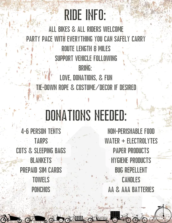 We’re infuriated to announce that the 2nd annual group cargo ride of mutual aid is back! At the end of the month, community and supporters will come together in challenge to haul supplies in support of the City’s houseless residents.